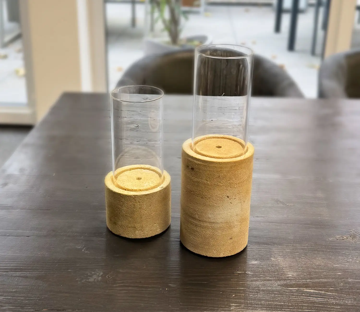 Dieser schöne handgefertigte Sandstein Kerzenleuchter ist aus echten Sächsischen Sandstein gefertigt. Das sorgfältig gefertigte Design verfügt über ein 15 cm langes Hurricane – Kerzenglas, das somit jedem Esstisch oder Kaminsims einen luxuriösen und zeitlosen Stil verleiht. Sächsicher Sandstein ist ein natürliches Material, daher können Variationen in Form und Farbe auftreten, die jeden Kerzenleuchter einzigartig machen. Unser Heller Sandstein – Kerzenleuchter bietet sowohl einen modernen als auch einen eleganten Look. Perfekt, um jedem Raum in Ihrem Zuhause einen gemütlichen Glanz zu verleihen. Die Lieferung erfolgt ohne Kerze.